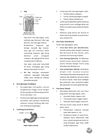 Gigi • Lambung terdiri atas tiga bagian, yaitu: