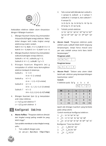 Subkulit s → l = 0 c. Aturan Pauli: ”Dalam satu atom tidak