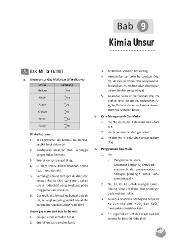 a. Unsur-unsur Gas Mulia dan Sifat-sifatnya Ne, Ar belum ditemukan senyawanya.