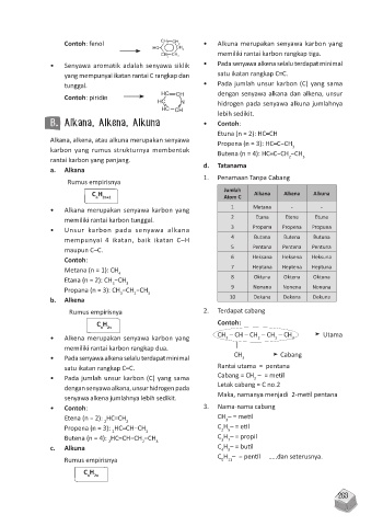 Contoh: piridin HC CH dengan senyawa alkana dan alkena, unsur