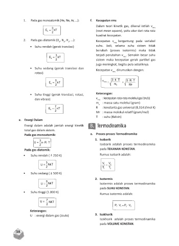 1. Pada gas monoatomik (He, Ne, Ar, ...): f. Kecepatan rms