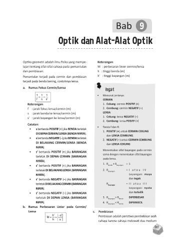 Pemantulan terjadi pada cermin dan pembiasan h’ : tinggi bayangan (m)