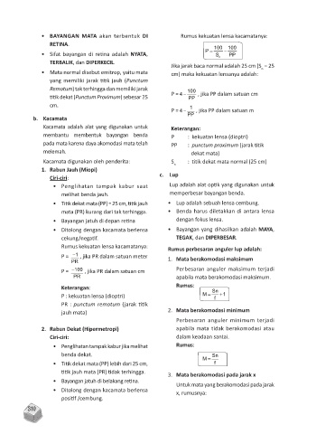 Rumus kekuatan lensa kacamatanya: Rumus perbesaran anguler lup adalah: