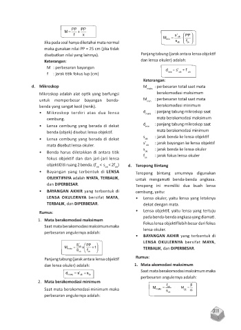 Saat mata berakomodasi minimum maka M maks = s ob ok M = α