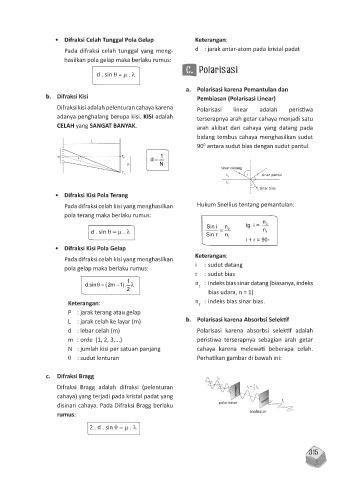 disinari cahaya. Pada Difraksi Bragg berlaku polarisator I 2