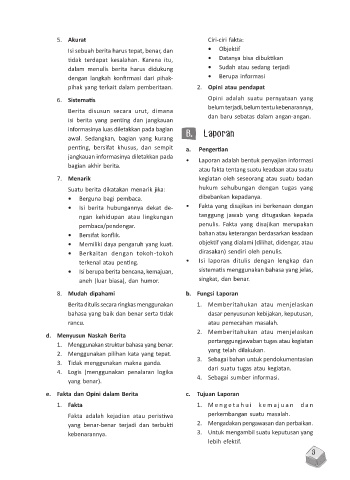 e. Fakta dan Opini dalam Berita c. Tujuan Laporan