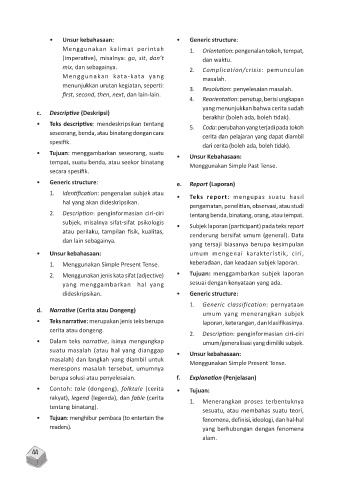• Unsur kebahasaan: • Generic structure: