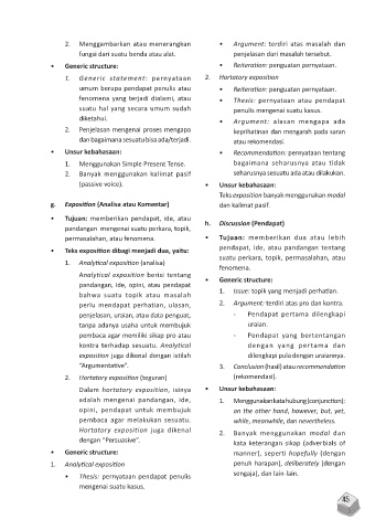 1. Generic statement: pernyataan 2. Hortatory exposition