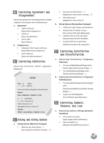 (Saya tidak setuju denganmu.) P. Expressing Satisfaction