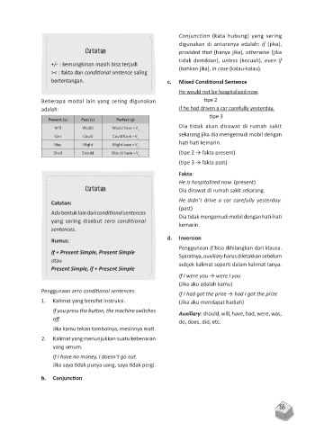 Ada bentuk lain dari conditional sentences Dia tidak mengemudi mobil dengan hati-hati