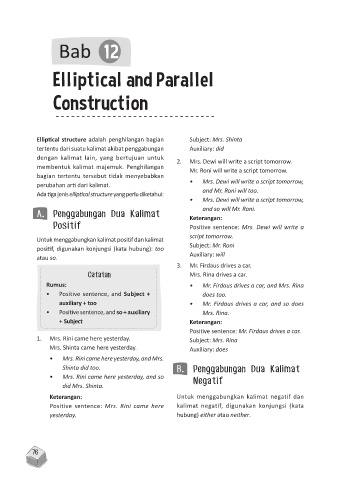 Elliptical structure adalah penghilangan bagian Subject: Mrs. Shinta