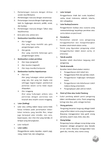 1. Pertentangan manusia dengan dirinya 2. Latar tempat