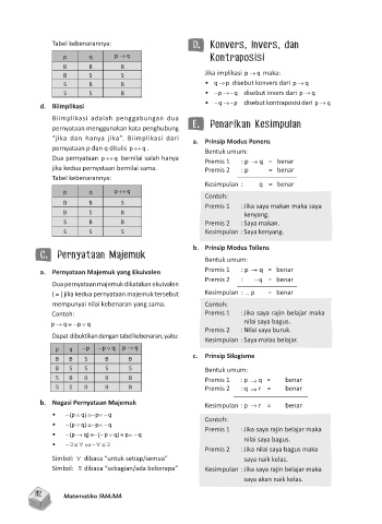 d. Biimplikasi • q → p disebut kontraposisi dari p → q