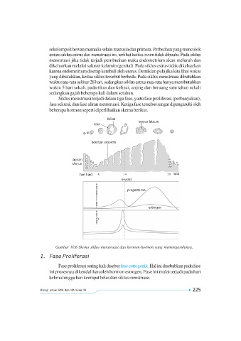 Gambar 10.6 Skema siklus menstruasi dan hormon-hormon yang memengaruhinya.