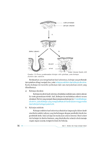 Gambar 3.9 Proses pembentukan kelenjar oleh epitelium, yaitu kelenjar