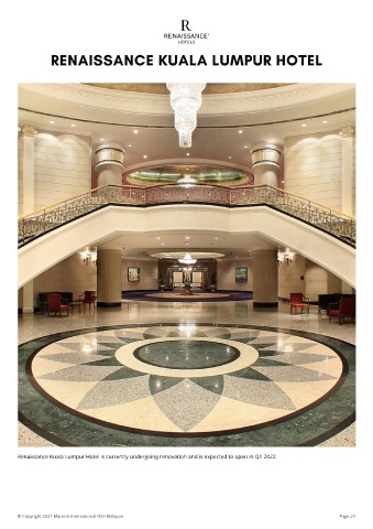 R E N A I S S A N CE K U A L A L U MP U R H OT E L Renaissance Kuala Lumpur Hotel is currently undergoing renovation and is expected to open in Q1 2022. © Copyright 2021 Marriott International GSA Malaysia Page 23