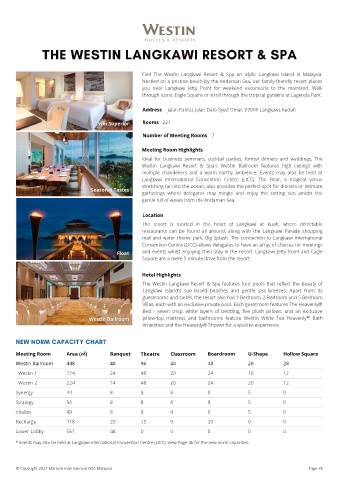 * Events may also be held at Langkawi International Convention Centre (LICC). View Page 46 for the new norm capacities.