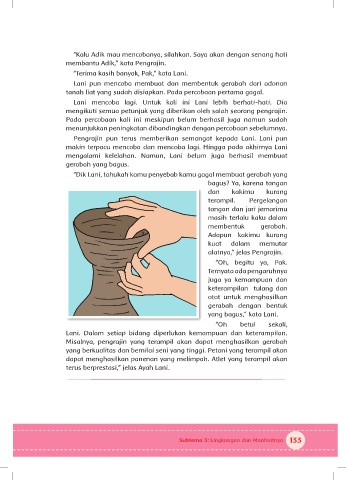 “Dik Lani, tahukah kamu penyebab kamu gagal membuat gerabah yang