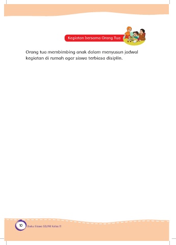 Kegiatan bersama Orang Tua Orang tua membimbing anak dalam menyusun jadwal kegiatan di rumah agar siswa terbiasa disiplin. 10 Buku Siswa SD/MI Kelas II