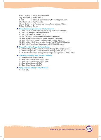 7. 2001 – 2016: Dosen Fakultas Ilmu Keolahragaan Universitas Jakarta.