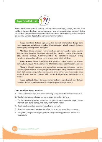 Kamu telah mengamati contoh-contoh karya montase, kolase, mozaik, dan