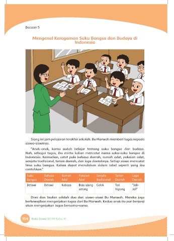Nah, sebagai tugas, ibu minta kalian mencatat nama suku-suku bangsa di
