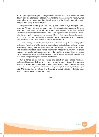 makanan Nusantara. Pelajaran penting dari lomba tersebut adalah keragaman