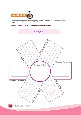 Sekarang bekerja samalah dengan gurumu. Gurumu akan membacakan cerita. Tulislah gagasan pokok dan gagasan pendukungnya. Paragraf 1 160 Buku Siswa SD/MI Kelas IV