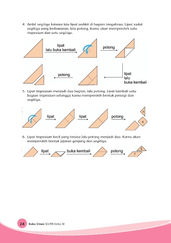 5. Lipat trapesium menjadi dua bagian, lalu potong. Lipat kembali satu