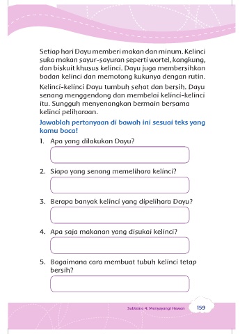 Setiap hari Dayu memberi makan dan minum. Kelinci