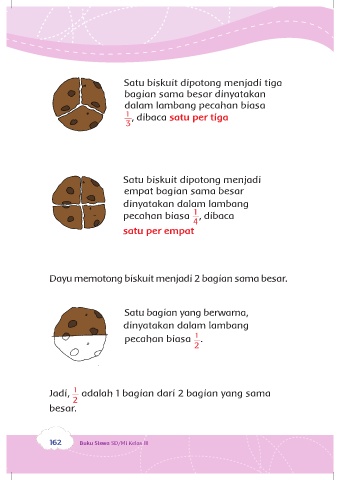 Dayu memotong biskuit menjadi 2 bagian sama besar.
