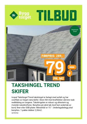 motstår naturkreftene. Benyttes på skrå tak med fast undertak av