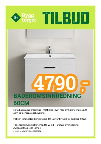 Pakken inneholder: Servantskap 60, Servant (vask) 60 og Speil 60x75.
