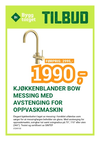 oppvaskmaskin, svingbar tut samt svingradius på 70°, 110° eller uten