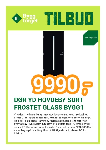 andre farger på bestilling. U-verdi 1,0. (Gjelder størrelsene 9/10 x