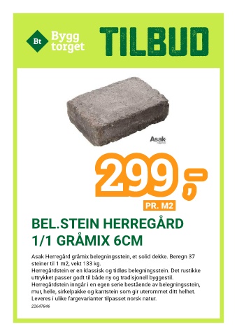 Asak Herregård gråmix belegningsstein, et solid dekke. Beregn 37