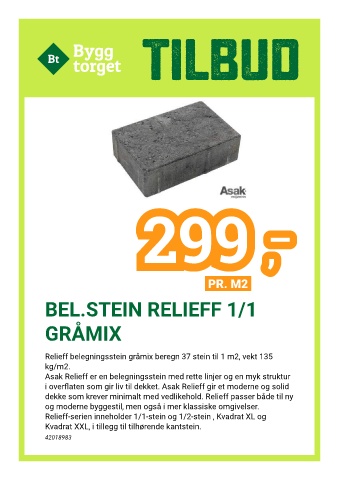 Relieff belegningsstein gråmix beregn 37 stein til 1 m2, vekt 135