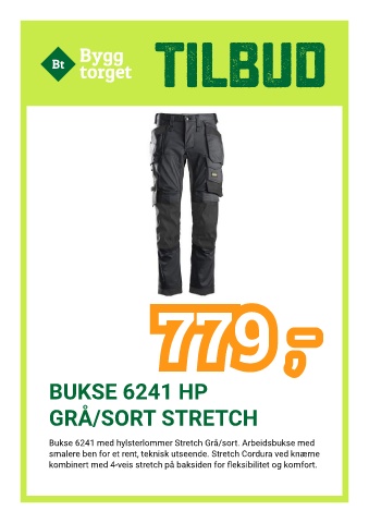 Bukse 6241 med hylsterlommer Stretch Grå/sort. Arbeidsbukse med