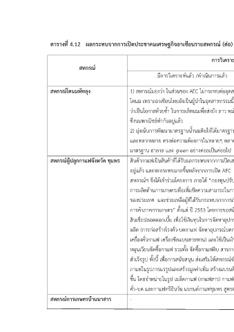 ตารางที่ 4.12 ผลกระทบจากการเปิดประชาคมเศรษฐกิจอาเซียนรายสหกรณ์ (ต่อ)