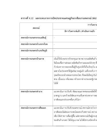 ตารางที่ 4.12 ผลกระทบจากการเปิดประชาคมเศรษฐกิจอาเซียนรายสหกรณ์ (ต่อ)
