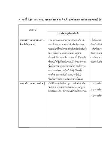 ตารางท 4.18 การวางแผนทางการตลาดเพื่อเพิ่มมูลค่าทางการค้าของสหกรณ์ (ต่อ)