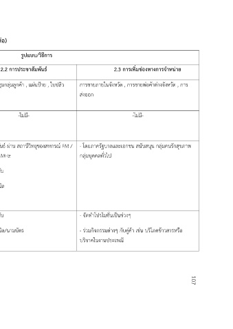 2.1 พัฒนารูปแบบสินค้า 2.2 การประชาสัมพันธ์ 2.3 การเพิ่มช่องทางการจ าหน่าย