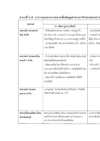 ตารางท 4.18 การวางแผนทางการตลาดเพื่อเพิ่มมูลค่าทางการค้าของสหกรณ์ (ต่อ)