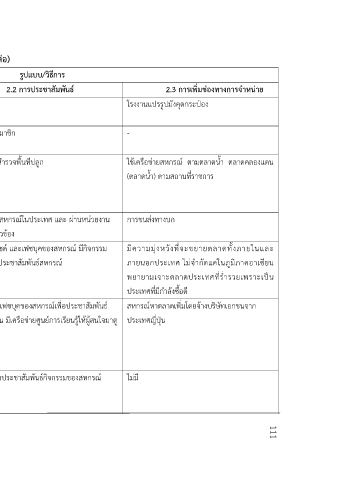 2.1 พัฒนารูปแบบสินค้า 2.2 การประชาสัมพันธ์ 2.3 การเพิ่มช่องทางการจ าหน่าย