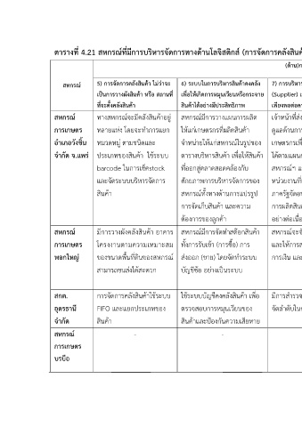 ตารางที่ 4.21 สหกรณ์ที่มีการบริหารจัดการทางด้านโลจิสติกส์ (การจัดการคลังสินค้า) (ต่อ)