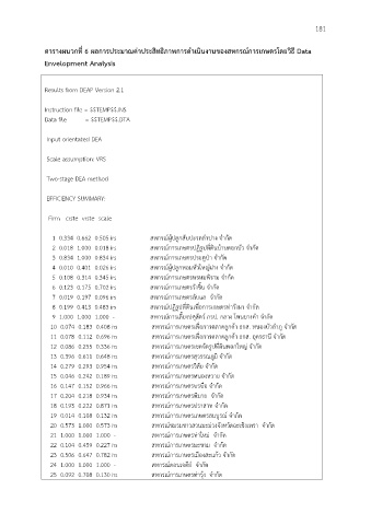 ตารางผนวกที่ 6 ผลการประมาณค่าประสิทธิภาพการด าเนินงานของสหกรณ์การเกษตรโดยวิธี Data