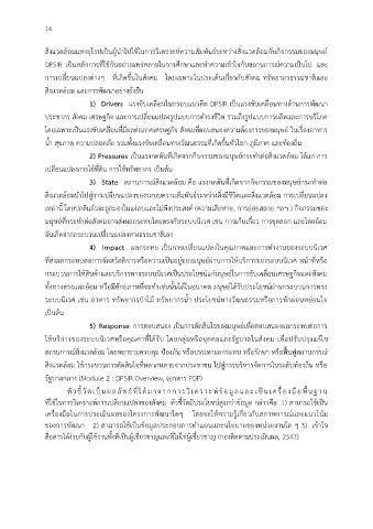 DPSIR เป็นหลักการที่ใช้กันอย่างแพร่หลายในการศึกษาและท าความเข้าใจกับสถานการณ์ความเป็นไป และ