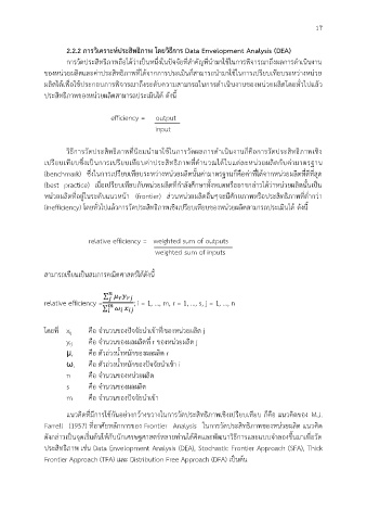 2.2.2 การวิเคราะห์ประสิทธิภาพ โดยวิธีการ Data Envelopment Analysis (DEA)