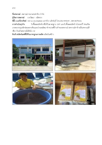 การด าเนินธุรกิจ รับซื้อผลผลิตข้าวที่ได้รับมาตรฐาน GAP และรับซื้อผลผลิตข้าวไรเบอร์รี่ ส่งเสริม