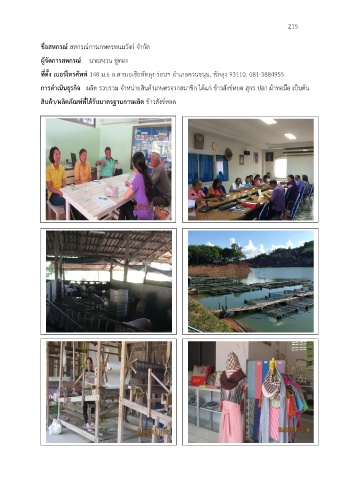 การด าเนินธุรกิจ ผลิต รวบรวม จ าหน่ายสินค้าเกษตรจากสมาชิก ได้แก่ ข้าวสังข์หยด สุกร ปลา ผ้าทอมือ เป็นต้น